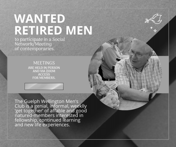 The Guelph Wellington Men’s Club is a genial, informal, weeklly ‘get together’ of affable and good natured-members